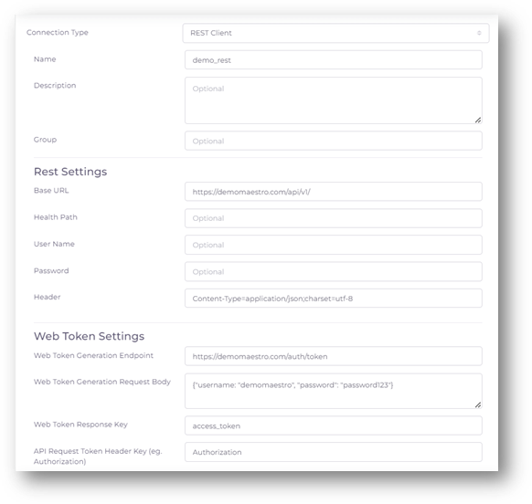 | WebToken (Optional) | Information to retrieve authentication tokens for requests | Web Token |